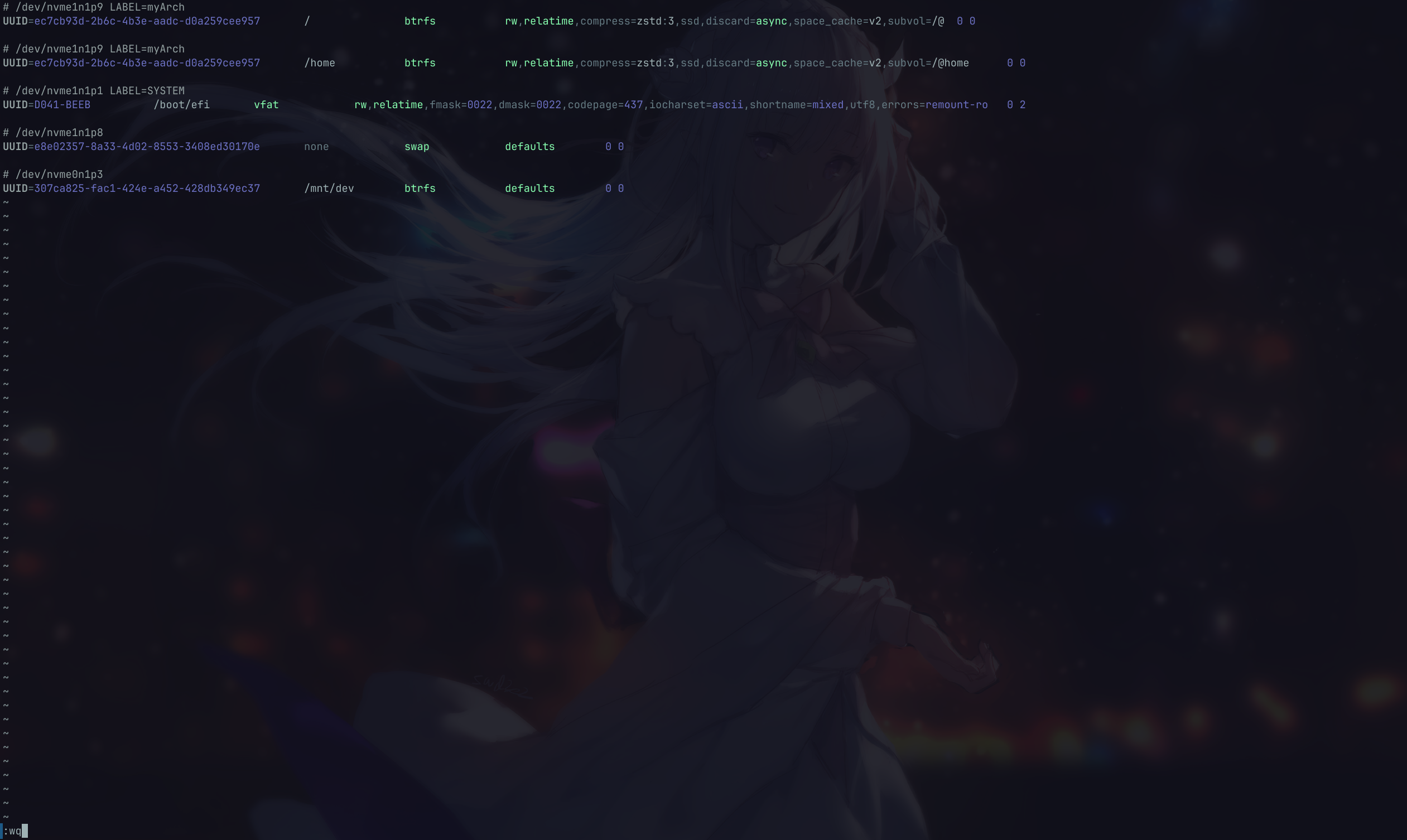 textUUID=xxxx-xxxx /mnt/dev btrfs defaults 0 0