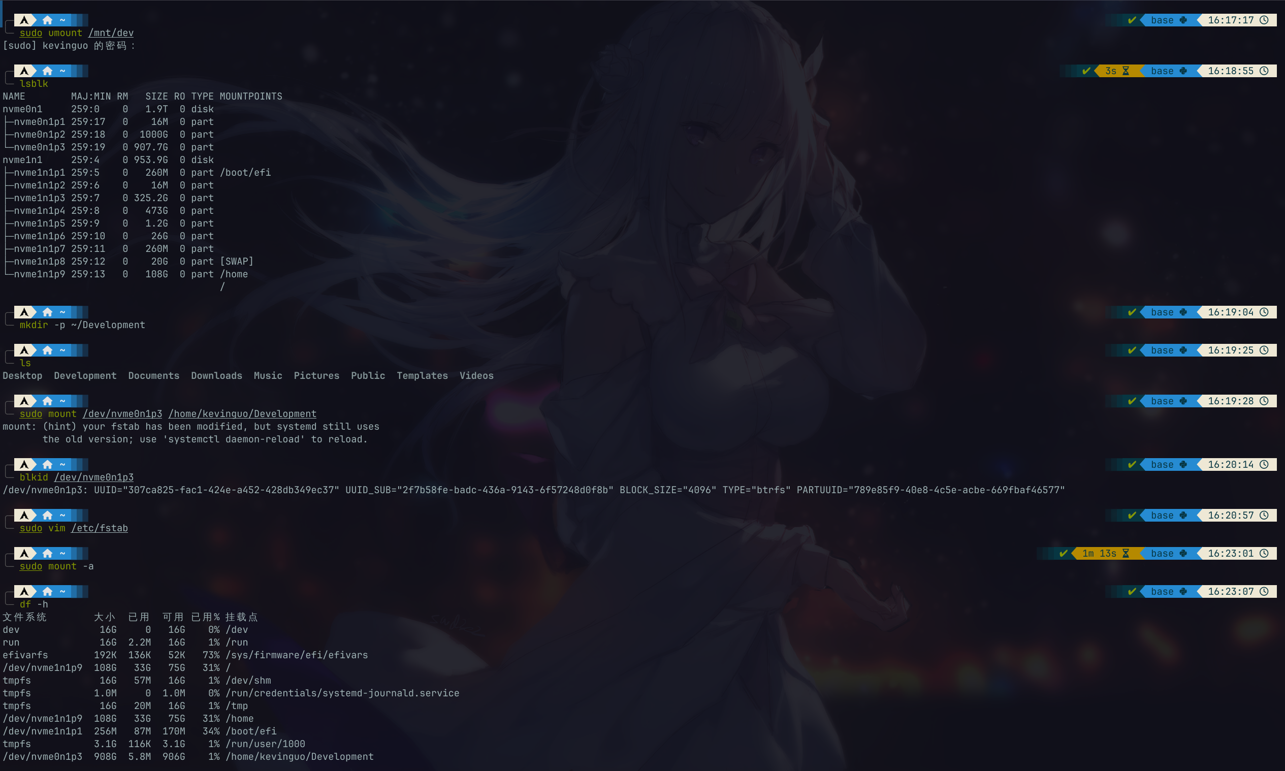 sudo mount /dev/nvme0n1p3 /home/kevinguo/Development